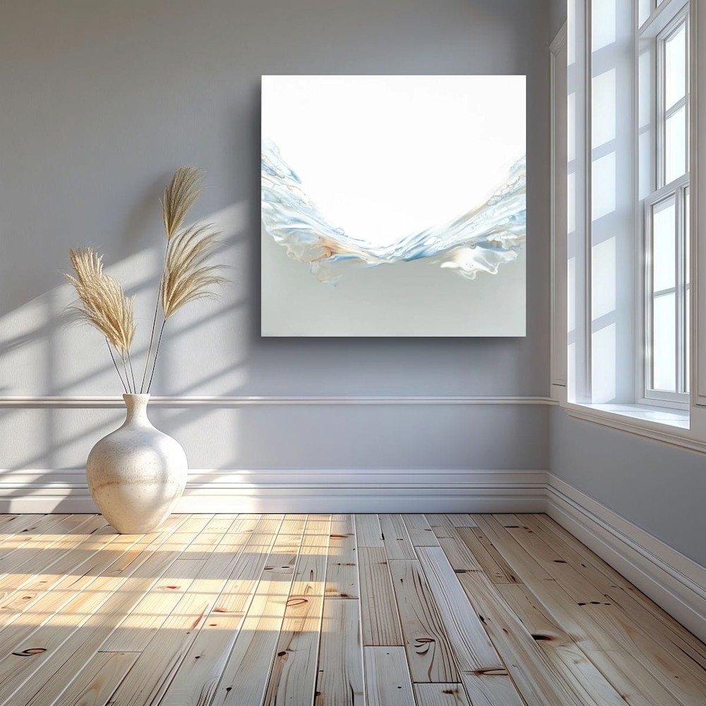 "Daydream Drift" feels like watching a wave take shape mid-air—light, airy, and full of quiet movement. Blues, whites, and soft beige swirl together across the canvas, floating like water caught between moments. Playing with layers and textures to get that sense of depth and flow was a bit like chasing a daydream itself—sometimes clear, sometimes slipping away.
