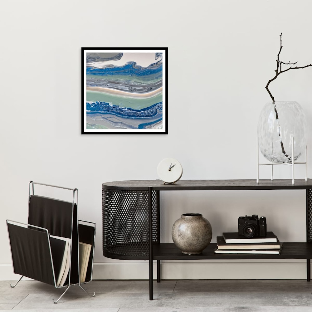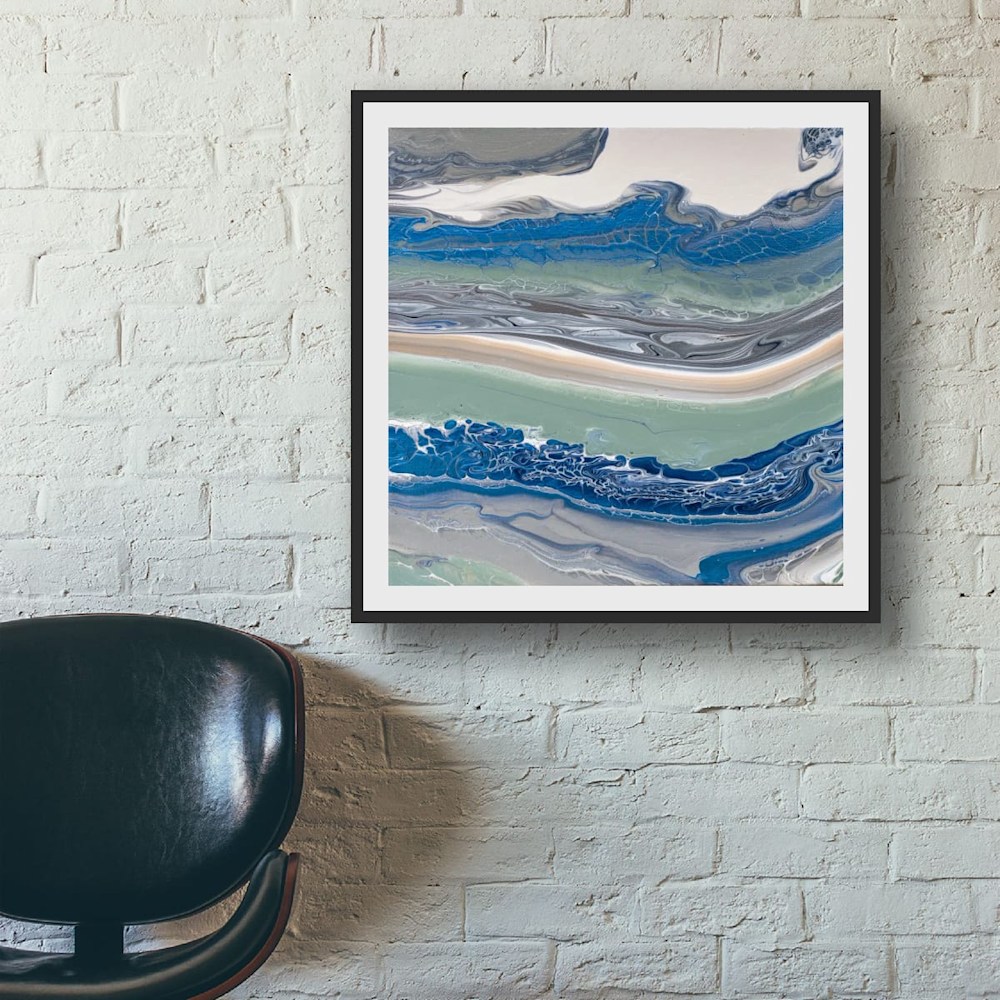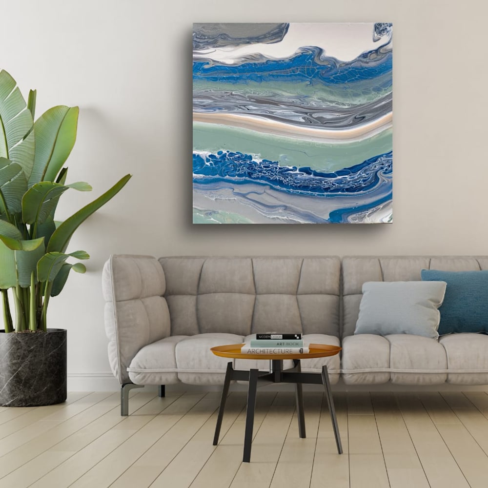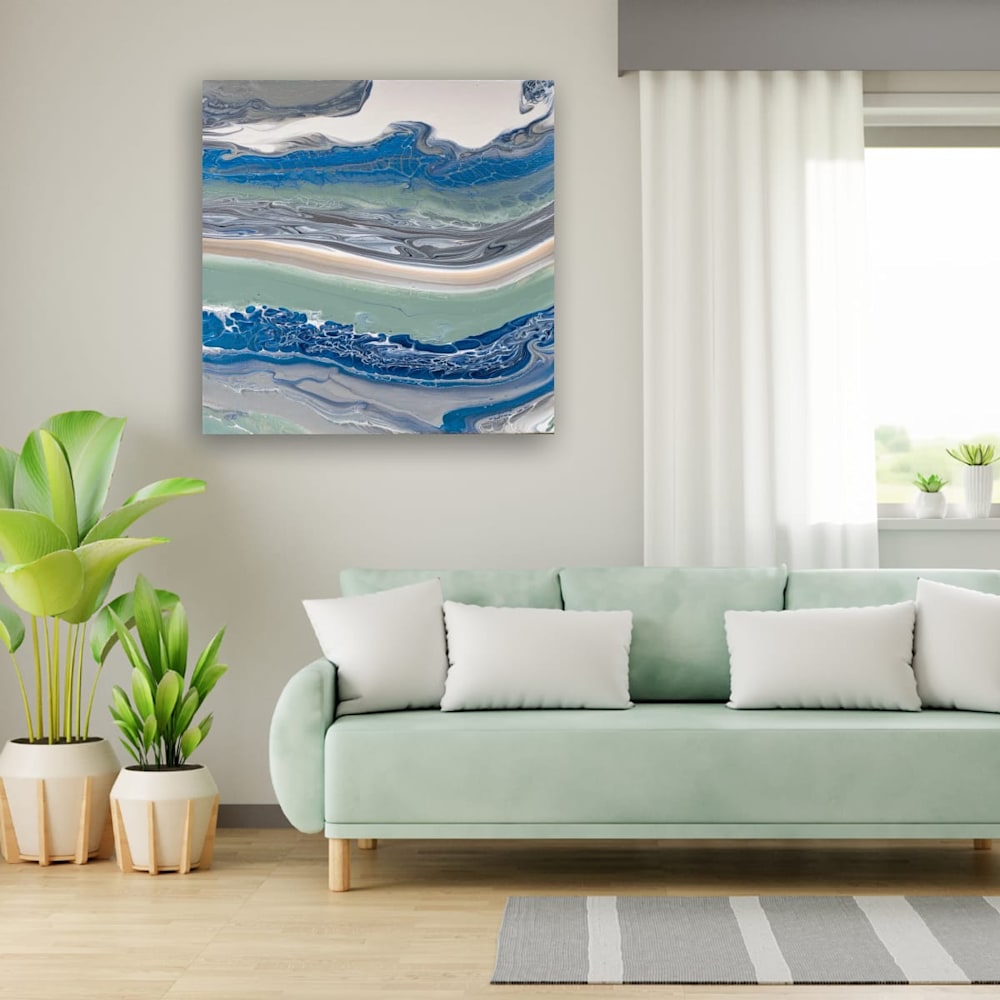 "Lazy Layers is a captivating blend of blues, greens, and soft neutrals, reminiscent of the gentle ebb and flow of ocean waves. The fluid layers convey a sense of movement, guiding the viewer's gaze across the canvas as if traversing tranquil waters. Subtle textures enrich the composition, inviting moments of contemplation and reflection. Ideal for enhancing any space, this piece brings a calming presence that resonates with serenity.