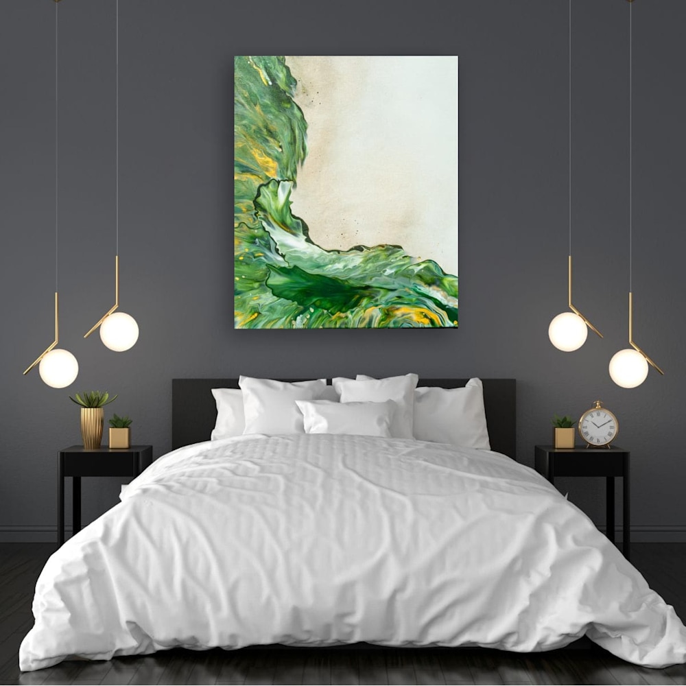 Details: This is an original 20x24-inch hand-painted acrylic artwork on an unframed 1.5-inch gallery-wrapped canvas. The edges are painted the same color as the painting, with some color drippings from the design. This piece is titled, signed on the back, wired, ready to hang, and packaged and shipped with care.